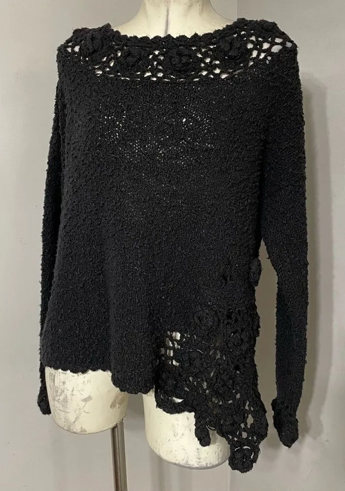 Carraig Donn Black Crochet Flowers 100% Pure Irish Boho Indie‎ Wool Sweater S - $100 - From Tiffany