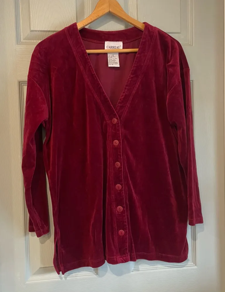 Carreau Sport Women's M Vintage 90s Burgundy Red Velvet Velour Jacket Cardigan Size M - $19 - From Camara