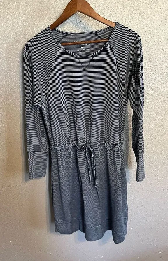 Carve Designs Cotton Dress Long Sleeve Tie Waist Drawstring Blue White Stripe Si Size L - $18 - From Madison