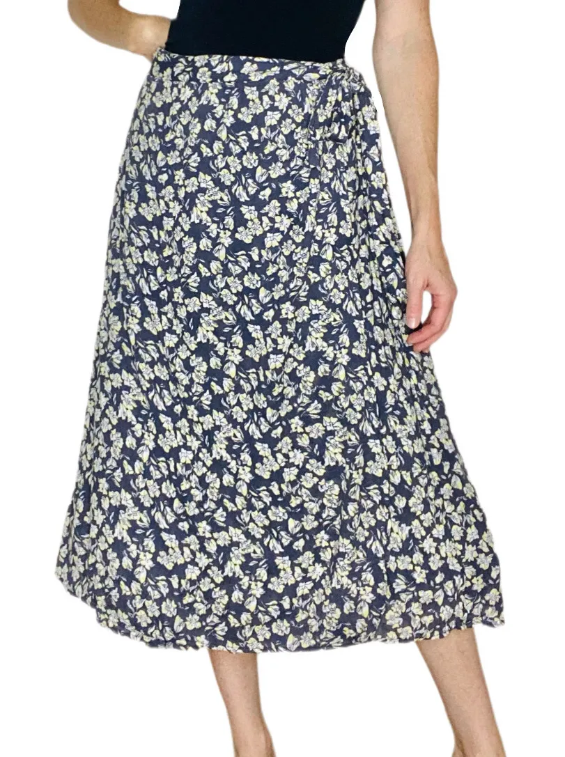•Measurements>>> Waist: 26 1/2” -31” (Elastic) Total Skirt Length: 28 3/4” •Model Reference: 5’6” 113lbs (25” Waist) •Brand: Caslon •Fabric: 55% Cotton, 45% Viscose Lining: 100% Cotton •Clean and in good condition. Used item, normal wear. •Comes from a smoke/pet FREE home. ***PLEASE: read full description, and look at all photos before purchasing. •Front of skirt, has a wrap, tie.