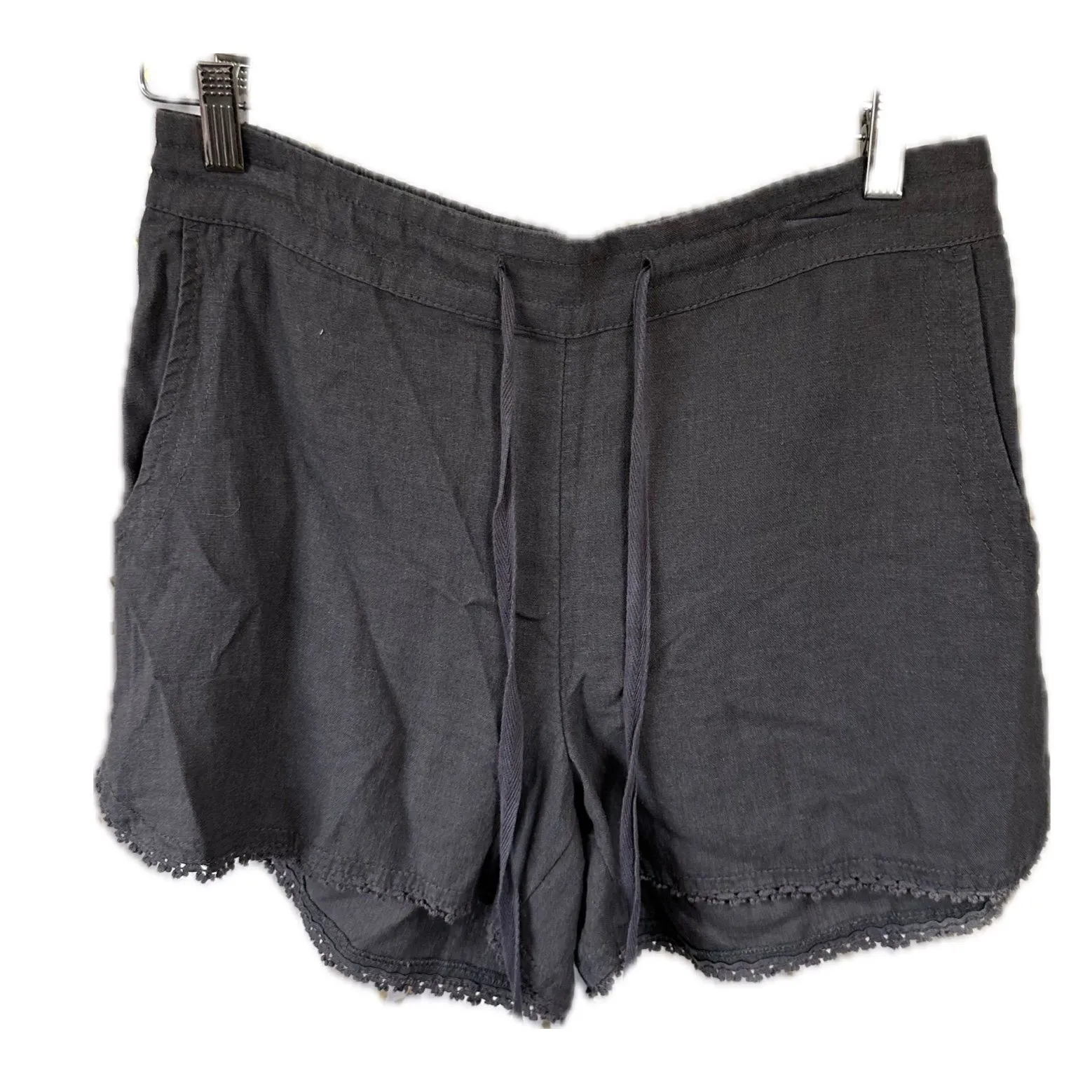 HD It's used, properly cleaned and in good condition Smell tested. No mildew or bad smells detected NWT Calson Women's Gray Linen Blend Lace Trim Drawstring Tie Side Pockets Shorts S Boho Indie Ethnic Rhapsody Gypsy Festival Rave Hippie Shabby Chic beach beachy beachwear ocean shore surf coastal nautical cruise exotic vacation resort wear travel friendly jetsetter on the go frequent flyer summer spring Color descriptions are suggestive and product color may vary due to photographic lighting sources or your monitor settings. I cannot guarantee the exact color shade Please familiarize yourself with this brand’s sizing as every brand may fit differently APPROXIMATE Measurements with a deviation of +/- 0.5 inches Waist: 15.25" Rise: 10.25" Inseam: 3.5" Made in India Linen, rayon 7oz Please review pictures to see the specific condition of the item you are purchasing. Stock photos give inspiration. No fit guarantee. Please ask questions. I want you to be happy with your purchase