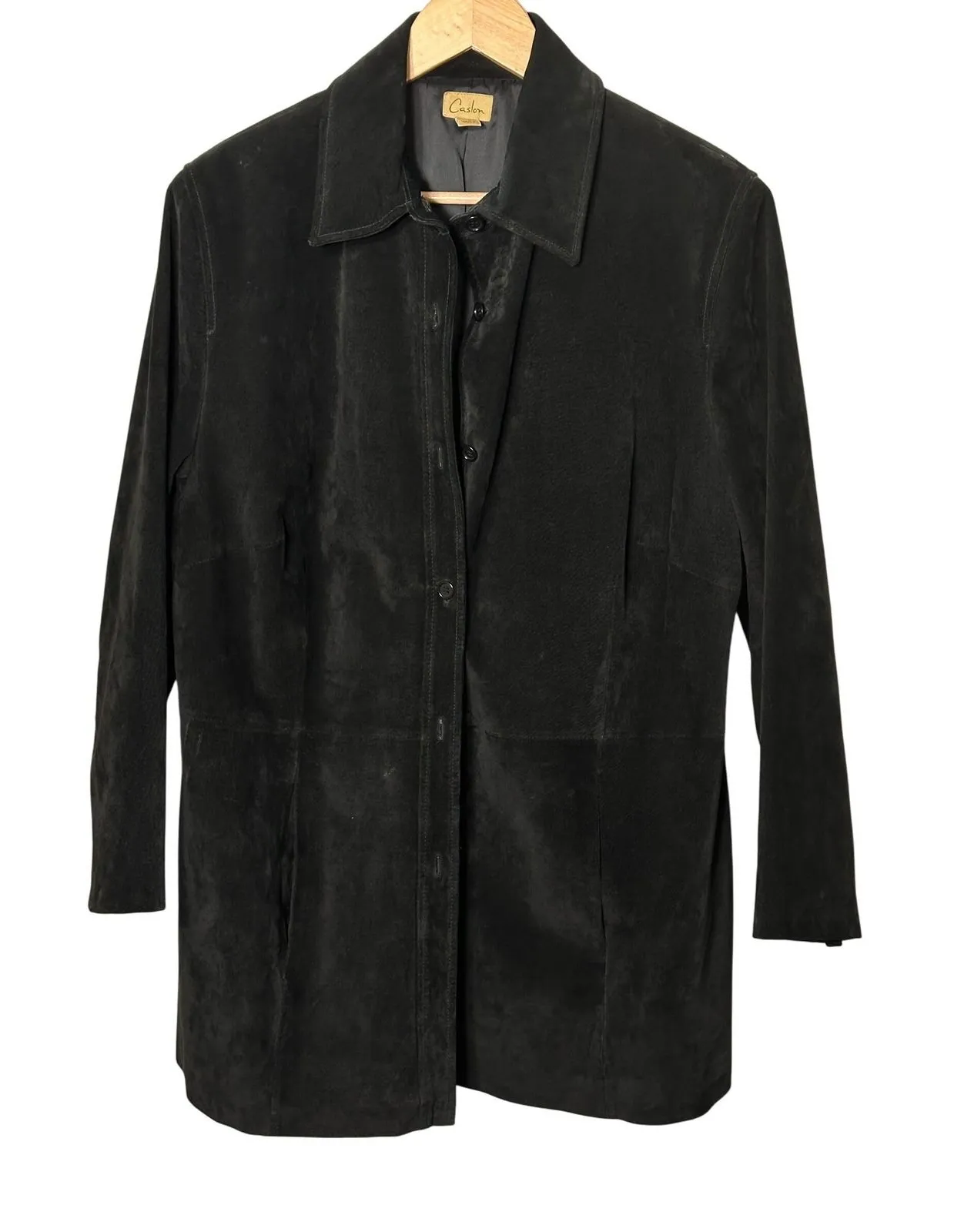 There are a few minor scuffs, could be brushed out with a good suede brush. Measurements: • Length: 31 inches • Pit to pit: 23 inches Type: Blazer Outer Shell Material: Leather Style: Basic Jacket Department: Women Color: Black Lining Material: Polyester Features: Lined, Collared, Shoulder Pads, Single-Breasted Accents: Button Pattern: Solid Jacket/Coat Length: Mid-Length Insulation Material: Polyester Season: Fall, Spring, Winter Closure: Button Keywords: Caslon, Leather Jacket, Blazer, Coat, Black, Womens, Plus Size, 1X, Career, Workwear, Genuine Leather, Classic, Office, Business Casual ***Please make reasonable offers with the "offer" button (I won't negotiate in comments, no transactions offsite, no trades)**** • All items come from a smoke-free home. • Please compare the measurements to something you already own.