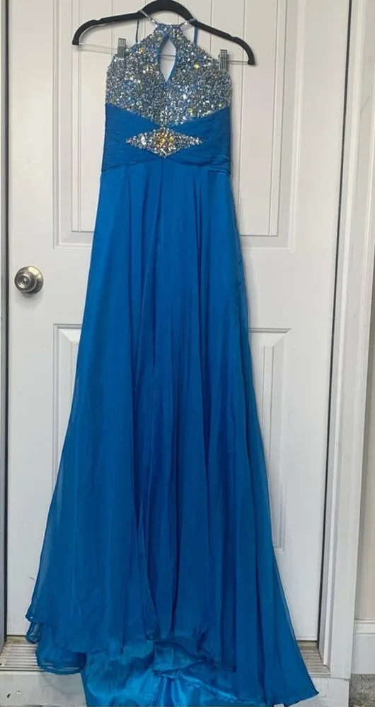 Cassandra Stone by‎ Mac Duggal embellished beaded blue halter maxi gown size 6 - $94 - From Snob