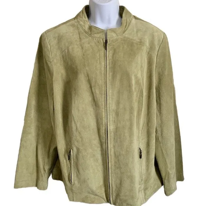 Casual Corner Annex Womens Green Suede Leather Jacket. Excellent, Like New Condition With a Full Zip Closure, Mandarin Collar, Zip Closure Pockets, and Fully Lined Inner Shell. Such a Beautiful Jacket! See Photos For Details and Feel Free To Ask For Measurements If Interested. Size 1X
