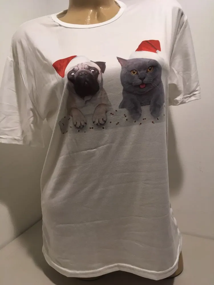 Cat & Pug Christmas T-shirt, Large White - $25 (28% Off Retail) New With Tags - From Lindys