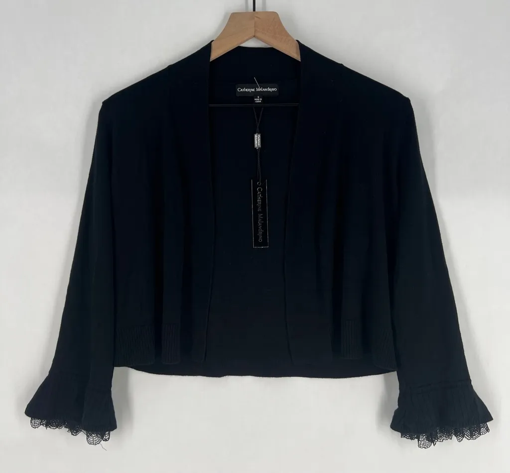 Catherine Malandrino Black Lace Trimmed 3/4 Sleeve Open Front‎ Crop Cardigan - $32 New With Tags - From Asia