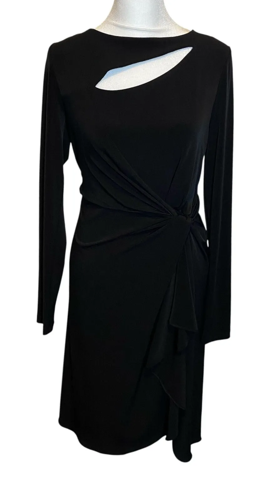 Condition: Excellent pre-owned condition, no flaws Material: 95 % Polyester, 5% Spandex Bust: 19 in Length: 40 in Size on Tag 6 - Please see measurements for best fit. Smoke and pet free place, you can contact us if you have any questions. Please note that some photos may not show accurate shades. Photos are of the actual item you will receive. New items posted daily. Ship Same/ Next Day Tags: Cocktail dress . Long Sleeve. Holiday dress. Evening dress. Black evening dress