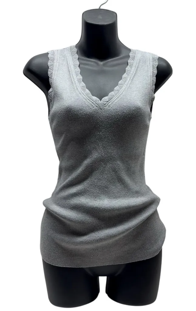 Catherine Malandrino Grey Ribbed Knit Scalloped V-Neck Tank Top Gray Size M - $18 - From Savannah