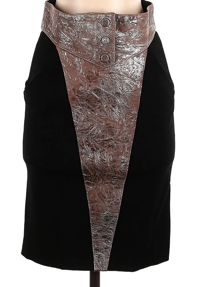 CATHERINE MALANDRINO Black Brown Leather Contrasted Pencil Skirt Size 4 Small S This chic skirt fea... Show more