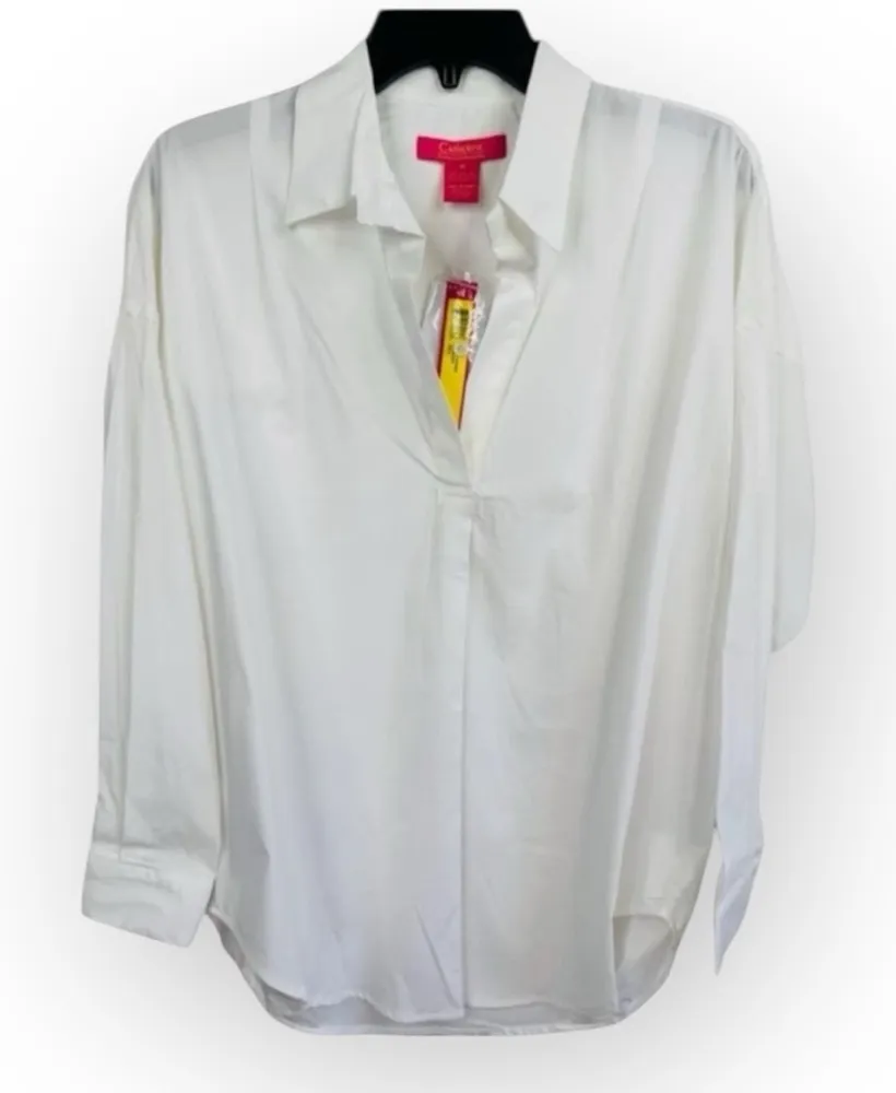 CATHERINE MALANDRINO Womens Long Sleeve Shirt Size XS White Classic Collared Minimalist Office Ready Condition: New condition. No flaws Size: XS Material: 61% COTTON, 34% POLYESTER, 5% SPANDEX Features: Collared, Long Sleeves, Button Cuffs, Curved Hem, Pullover style, Oversized Relaxed Fit Measurements: approximately Chest width 23” Total length 29" Smoke Free Environment Ships next business day Tags: business casual, professional wear, everyday, all-season, clean, refined, chic, workwear, capsule wardrobe, polished, comfortable, versatile