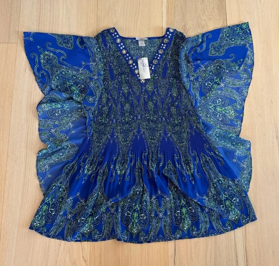 Catherines Blue V-Neck Blouse With Jewels Size 1X 18/20W NWT Measurements: Length: 31 in Blue mu... Show more