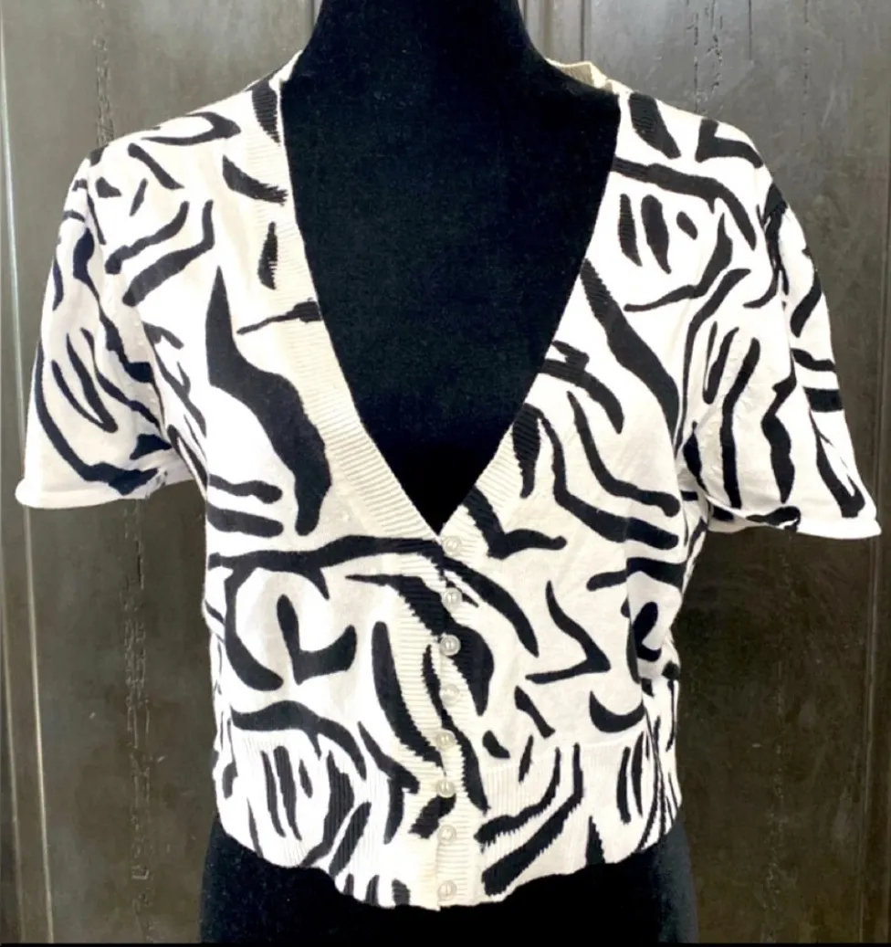 Cato black/wht animal pattern crop cardigan sweater - Size Medium. ***Refer to measurements as size... Show more