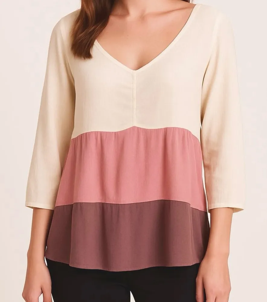 NEW! NWOT-Never Worn ! Cream-Pink-Purple-Textured Baby doll Blouse-Womens SZ Large Compliments are... Show more