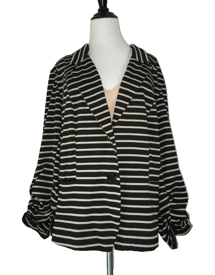 Cato Blazer Jacket Womens Plus 26W 28W 4X Ponte Knit Coat Black Beige Stripe Career Work Condition... Show more