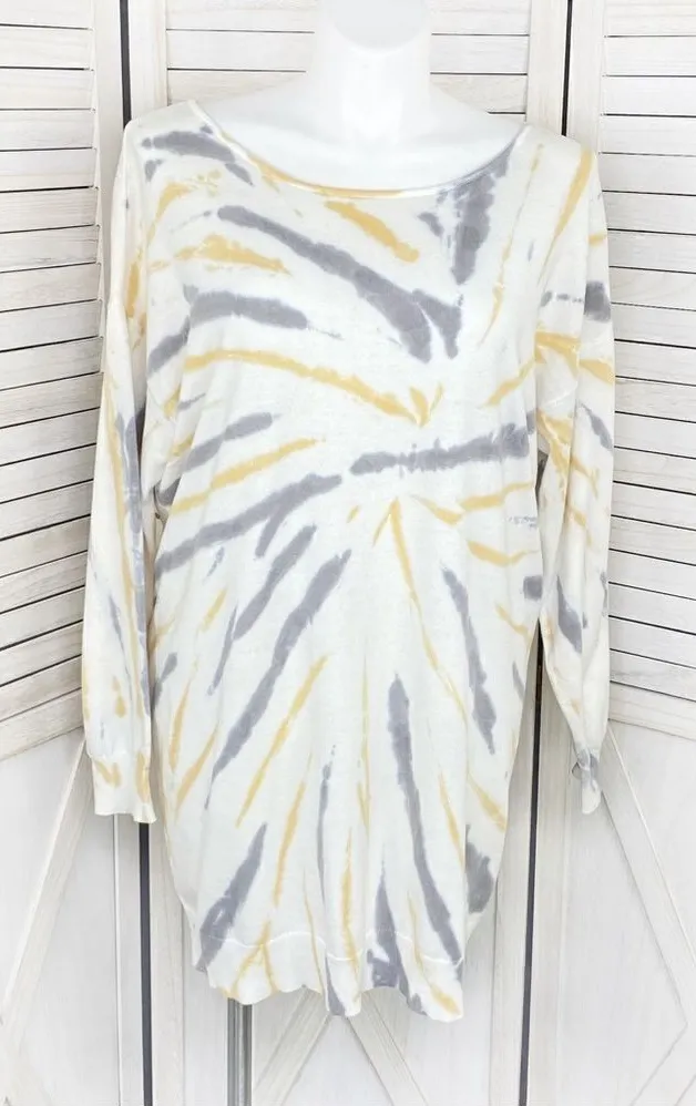 Cato Fashion Tie Dye Tunic Sweater Dress Size XL White with gray & dark yellow tie dye Lightweig... Show more