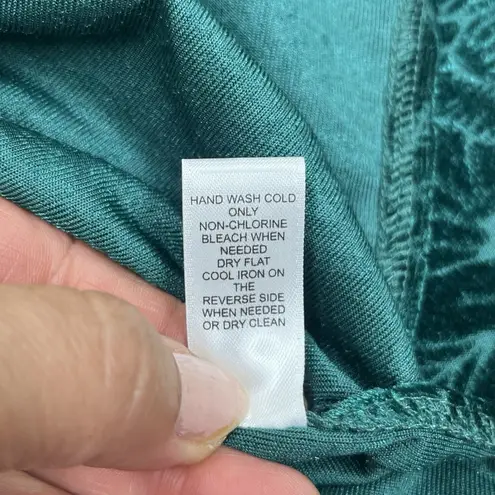 Long bell sleeves. Split offset hemline. Polyester and spandex. Machine washable. Excellent preown... Show more