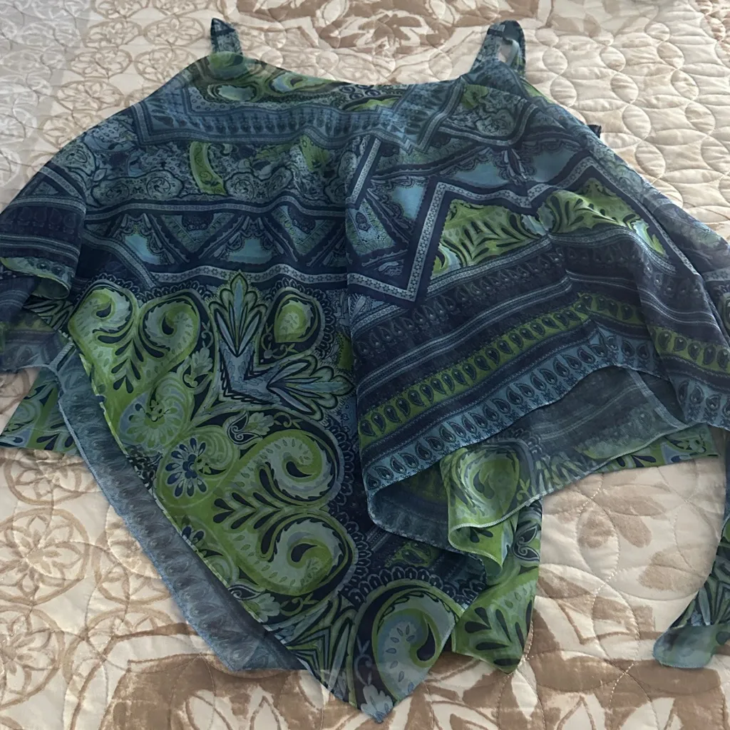 Cato Women tank top with poncho multicolored abstract print stretchy tank top and sheer (no stretch)... Show more