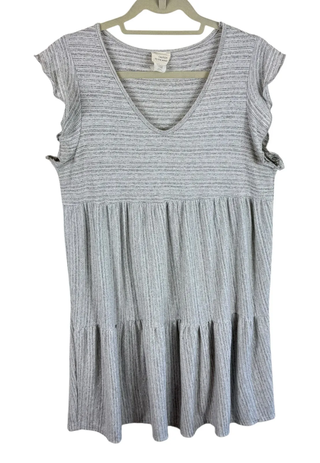 Excellent preowned condition. Caution To The Wind Gray Heather V-Neck Flutter Sleeve Tiered Pleated... Show more