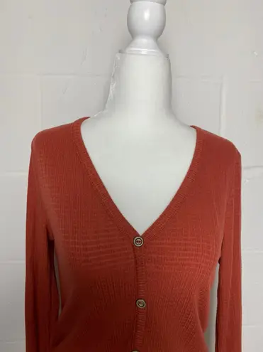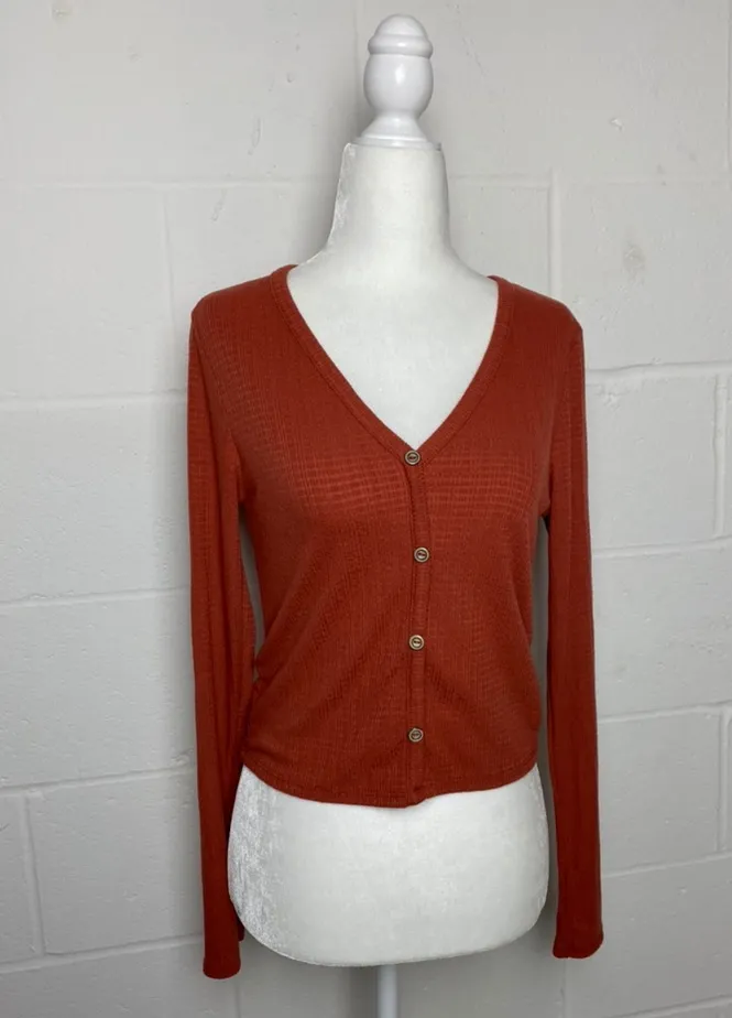 Long sleeve burnt orange slightly cropped button down. Very soft and comfortable! Cute and casual wi... Show more