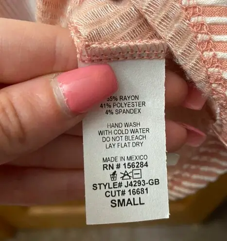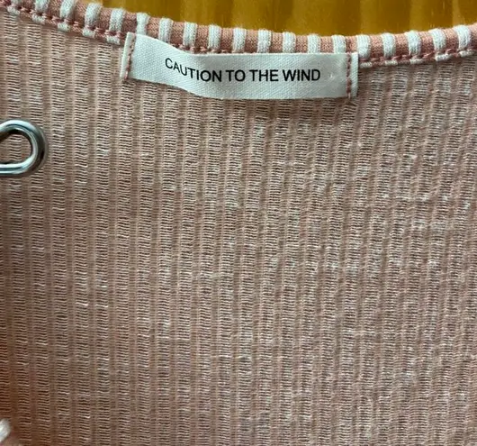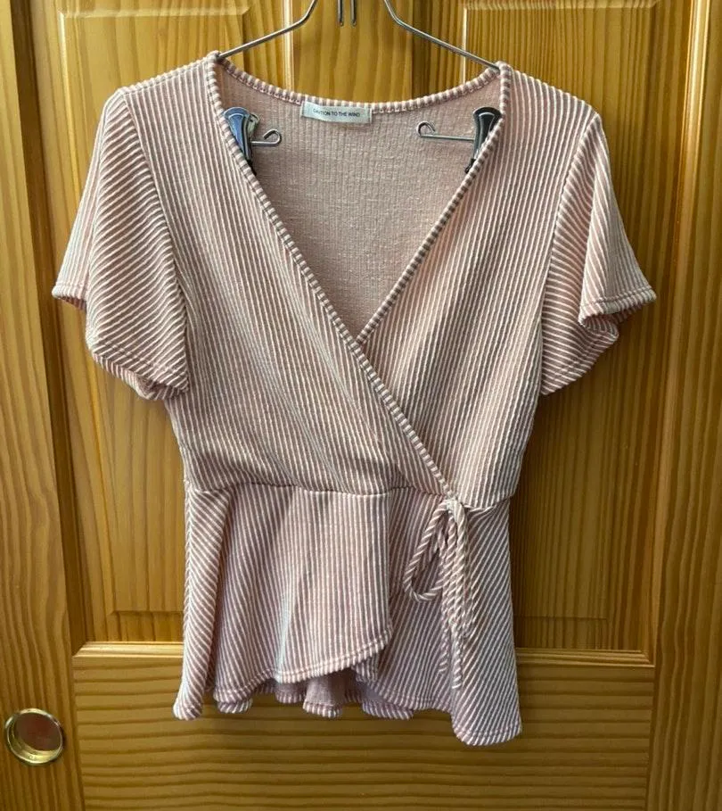 Caution to the Wind baby pink striped peplum wrap top size small. Only worn once, super cute and ver... Show more