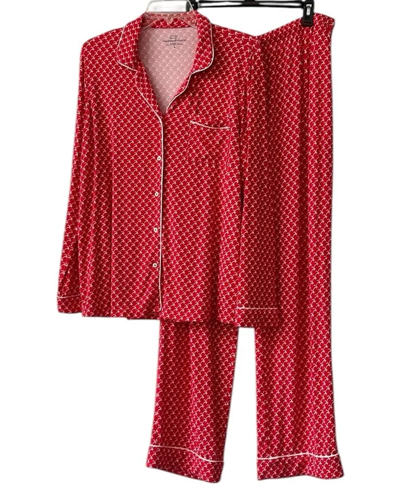 Vineyard Vines Super-Soft Printed Knit Pajama Set Size: Large Color: Red White Reindeer Print Super... Show more