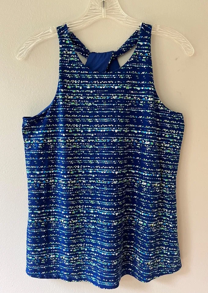 Cece Sz XS Halter Blue Neon Dots Striped Fully Lined Tank Top Pullover Stretch Pristine preloved co... Show more