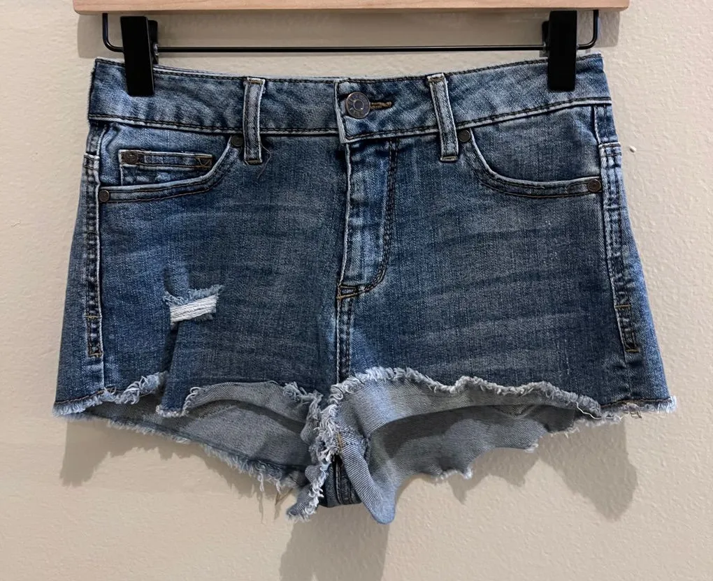 Celebrity Pink Stretch Medium Wash Denim Distressed Women Cutoff Shorts Size 2 Trendy distressed... Show more