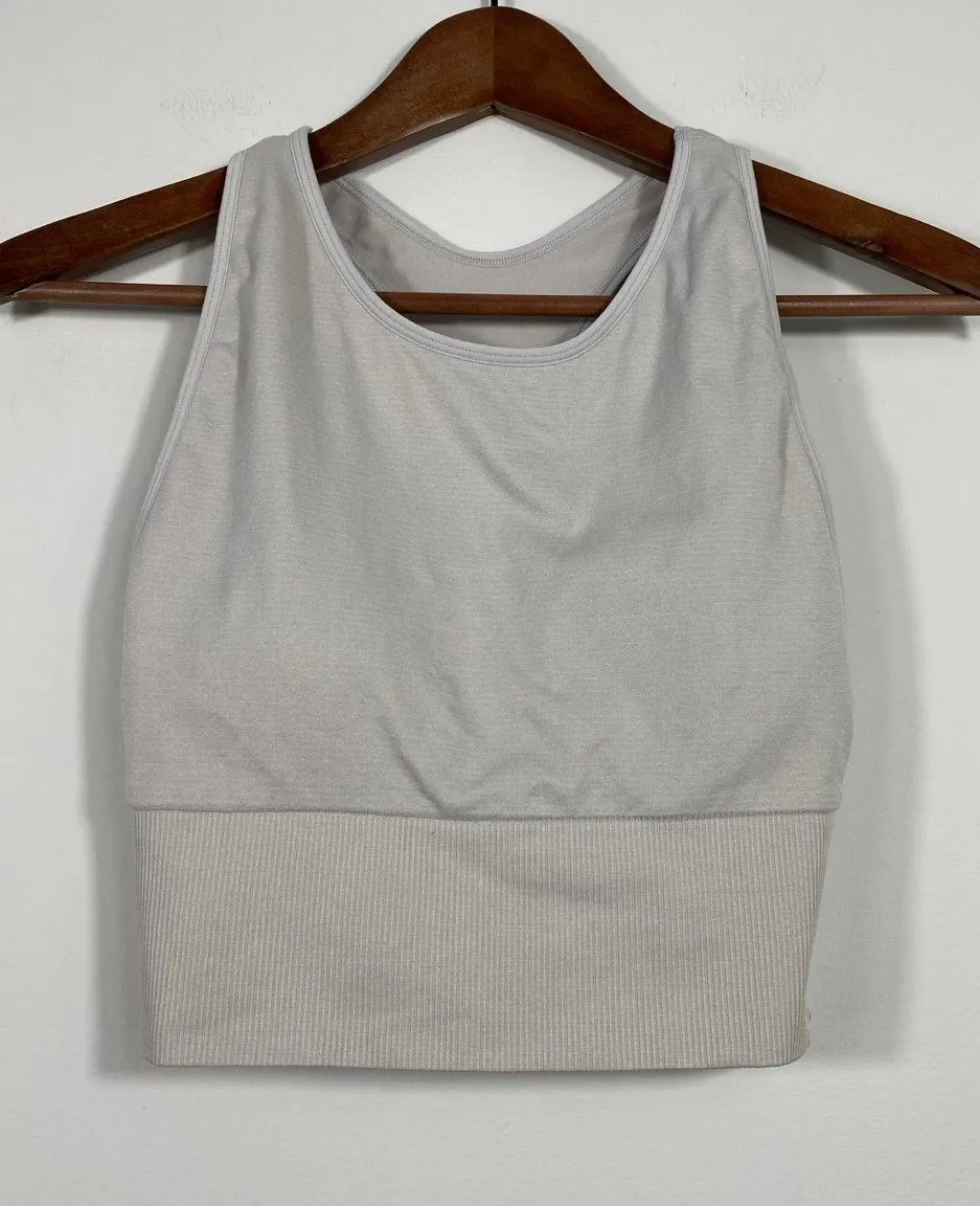 Victoria’s Secret PINK Active seamless sports bra tank in a soft light gray color. Features a scoop... Show more