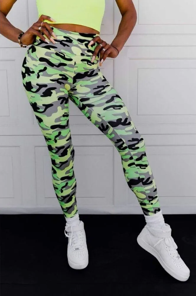 Celestial Bodiez OG Ultra High Rise Leggings in 'Hidden in Neon' Size Small. In excellent used condition. These Signature ULTRA High Rise Bootyscrunch leggings feature the Celestial Bodiez’ patented Bootyscrunch seam (also known as scrunch butt, scrunch booty, scrunch bum...and whatever other cute name ya wanna call ‘em). Signature Features ULTRA High Waist band (they added an inch in height to the waistband) Classic BootyScrunch Seam THE Original Bootyscrunch Legging Curve Hugging Design THE BEST LEGGINGS YOU’LL EVER OWN These are designed to accentuate your curves in all the right places. They’re ultra sleek, soft and versatile AF. Oh...and these leggings are abso-F*CKING-lutely squat proof. BEST LEGGINGS EVER. (Some things never change) Fabric: The Lunar Blend Brushed 86% Polyester/14% Spandex blend 300 GSM (grams per square meter) Rich Thicc and luxurious feel