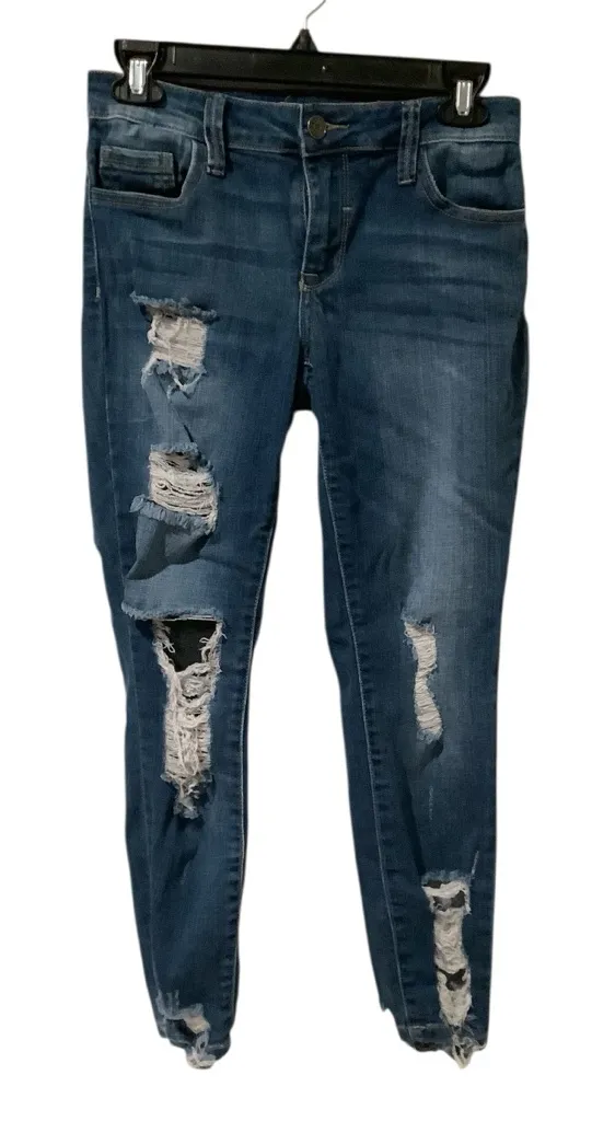 Trendy distressed skinny jeans by Cello. Dark blue with stylish rips. Perfect for casual outings.