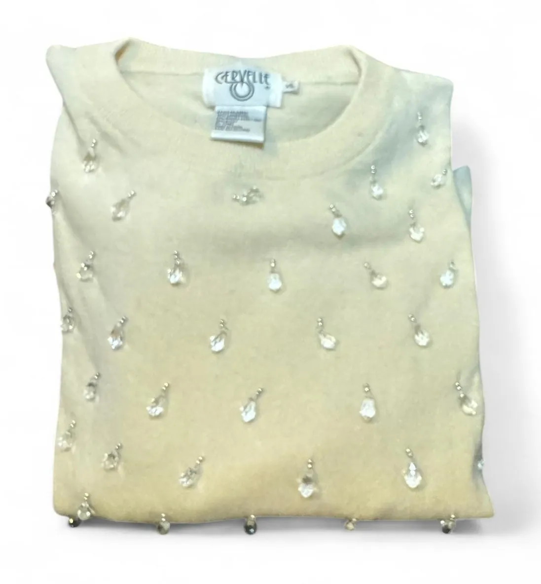 Cozy, elegant, and beautifully embellished — this Cervelle women’s sweater (size XL) features clear... Show more