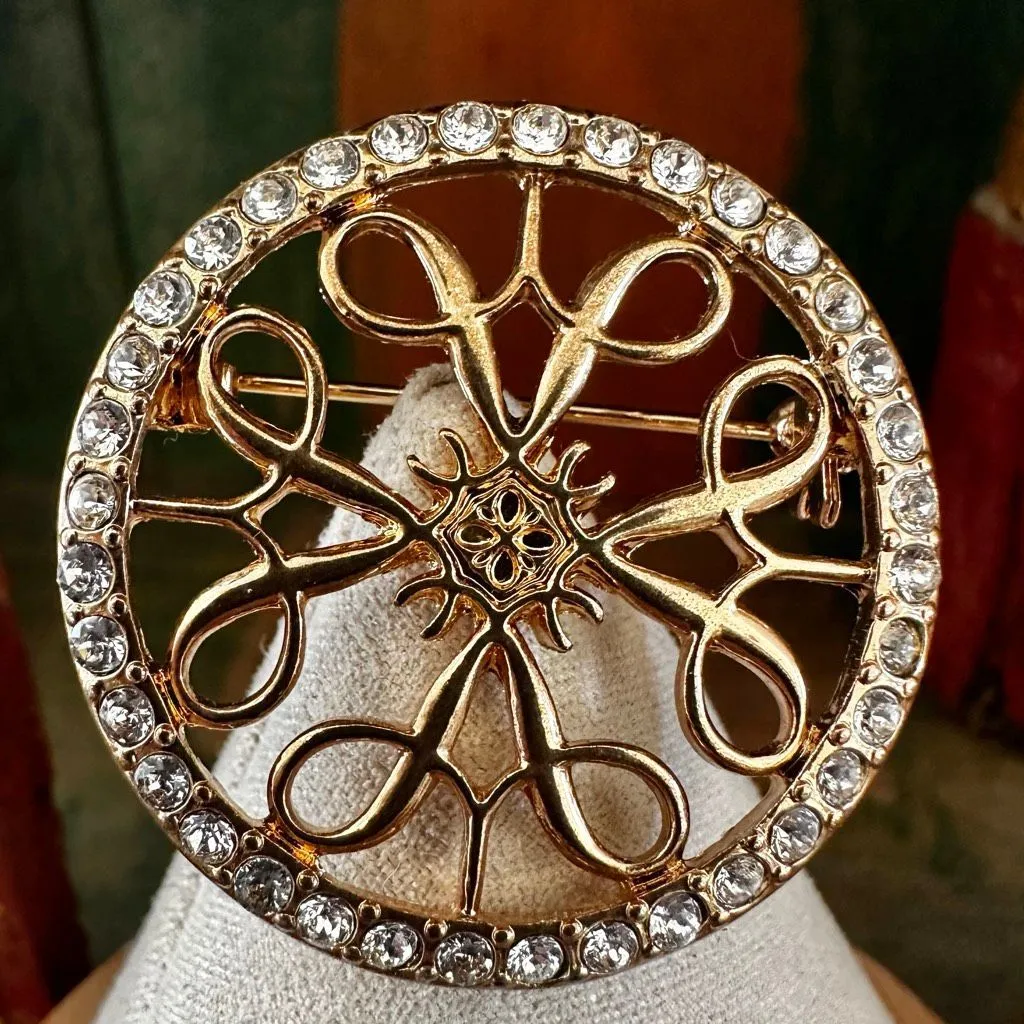 Elegant vintage Nina Ricci for Avon brooch signed NRT. Gold-tone metal with a radiant circular design, accented by sparkling clear rhinestones around the border. A beautiful mix of French designer flair and Avon collectibility, this piece is in excellent condition with no missing stones and brilliant shine. ✨ Styling tip: Perfect for adding a touch of vintage glam to a blazer lapel, scarf, or even clipped onto a handbag for a chic statement. Bundle to save! Free gift with a purchase of 3 or more items Same or next day shipping & packed with care. 📸 Photos are part of the description. #NinaRicci #AvonJewelry #VintageBrooch #RhinestoneBrooch #GoldToneJewelry #VintageStyle #CollectibleBrooch #DesignerJewelry #StatementPin