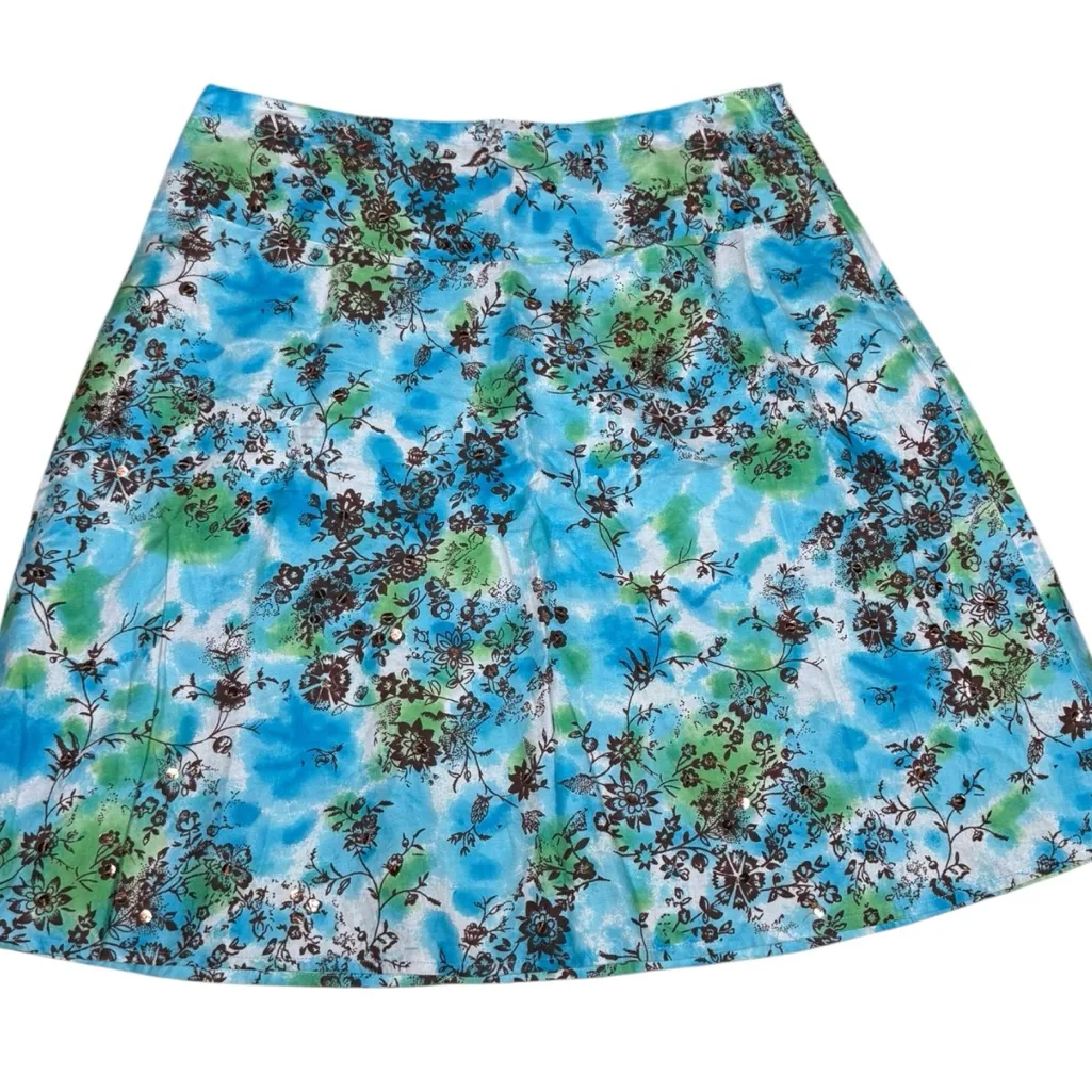 90s Cha Cha Vente Floral Skirt Womens Medium Blue Green White A-Line Summer Boho Lightweight Casual... Show more