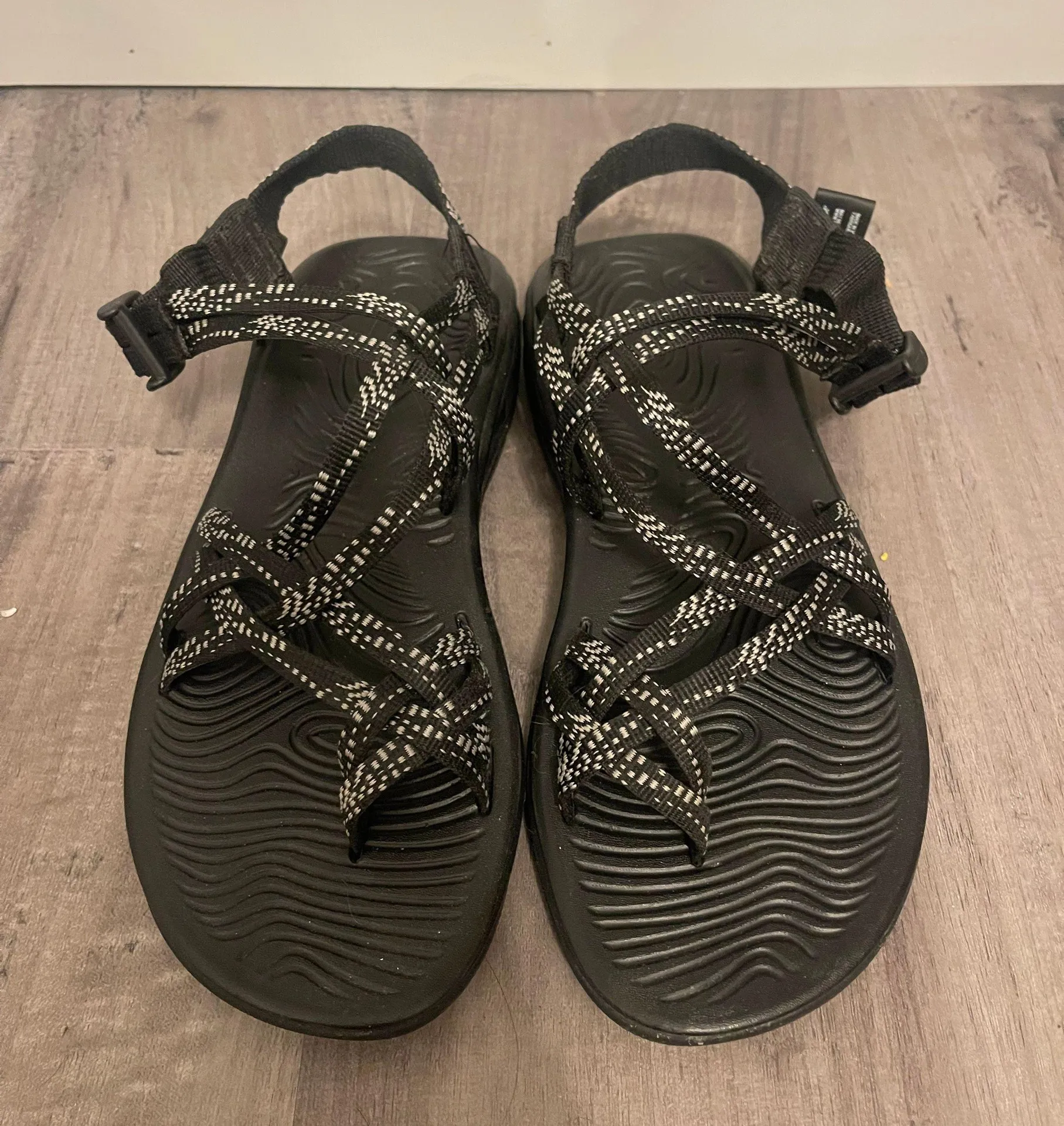 - black and white design - tag says 9 but fit more like an 8.5 - barely worn (doesn’t fit my ankle... Show more