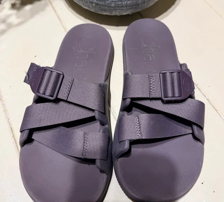 Chaco sandals W8 size Comfortable purple slide sandals with adjustable straps.