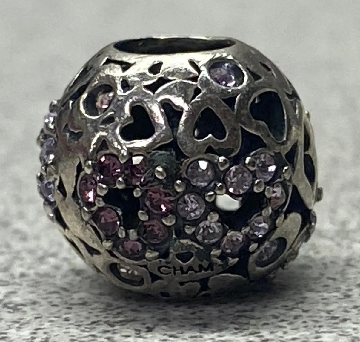 Preloved in excellent condition Please see all photos for close up details. Style: Charm Type: Charm Main Stone Color: Purple Material: Crystal, Rhinestone Metal: Silver Main Stone: Cubic Zirconia Secondary Stone: Crystal, Rhinestone Charm Type: European Theme: Celestial & Horoscope, Luck Shape: Heart Number of Gemstones: 59 Main Stone Shape: Round Setting Style: Pavé Cut Grade: Very Good Keywords: sterling silver charm, pink crystals, purple crystals, heart charm, dangle charm, beaded charm, European style, bracelet charm, jewelry making, gift for her, romantic, feminine, sparkling, fashion jewelry