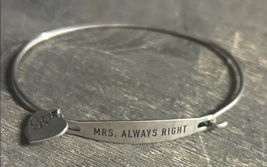 Chamilla 925 Silver Bangle Bracelet with Heart Charm “Mrs Always Right” - $45 - From Kayla