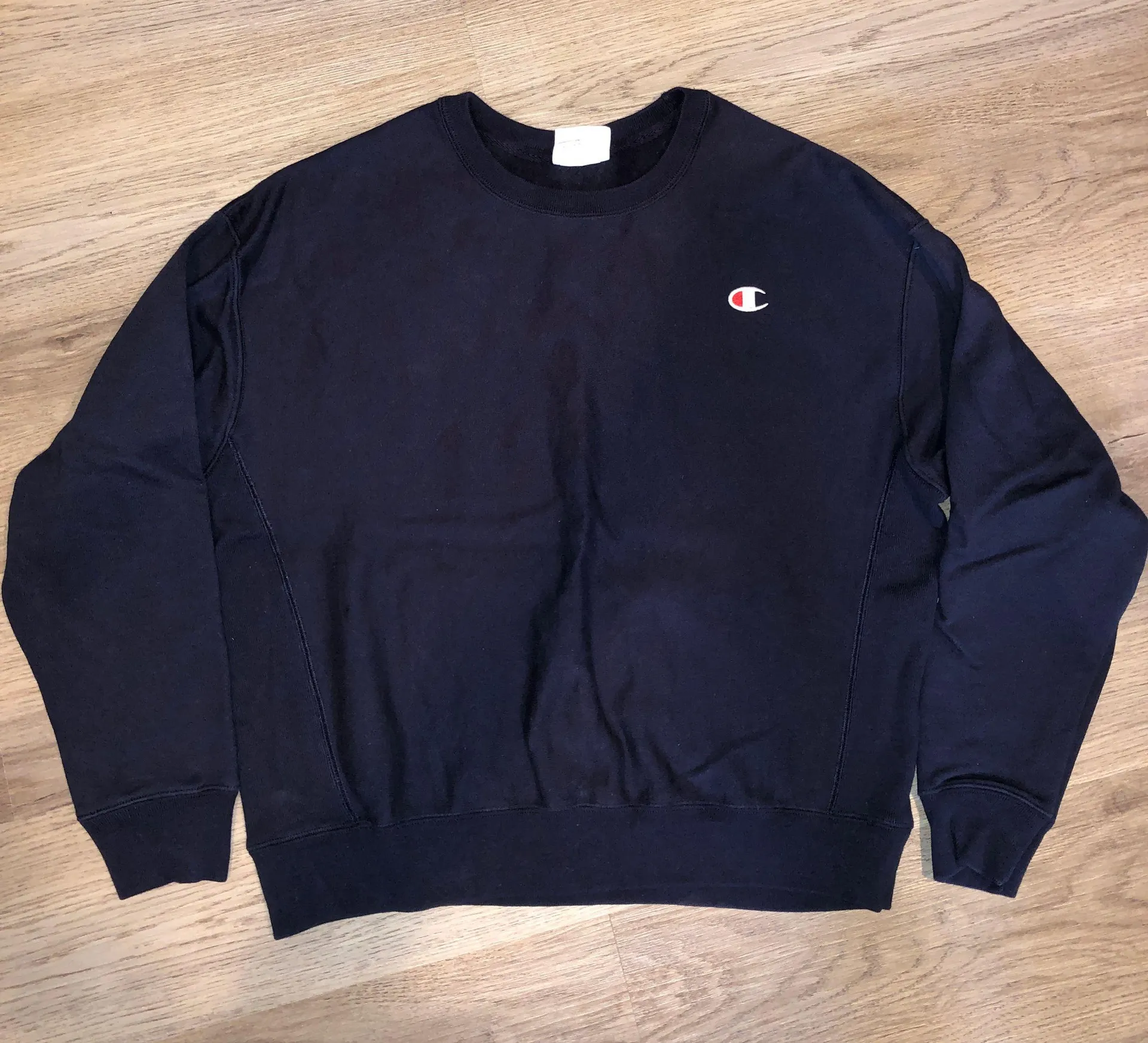NEVER WORN, but tags have been taken off! Cropped crewneck, heavier material/fabric. Navy blue color