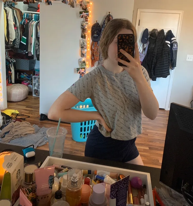 Super adorable grey cropped champion shirt Size runs small.