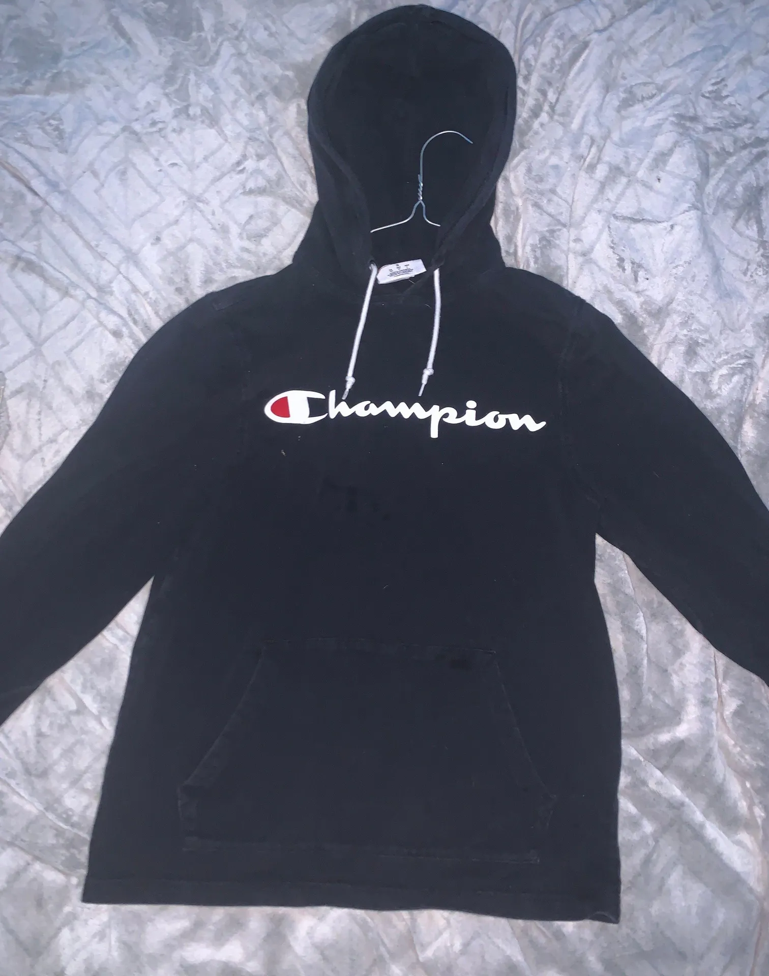 black size small champion hoodie a small stain under the C on champion light weight hoodie