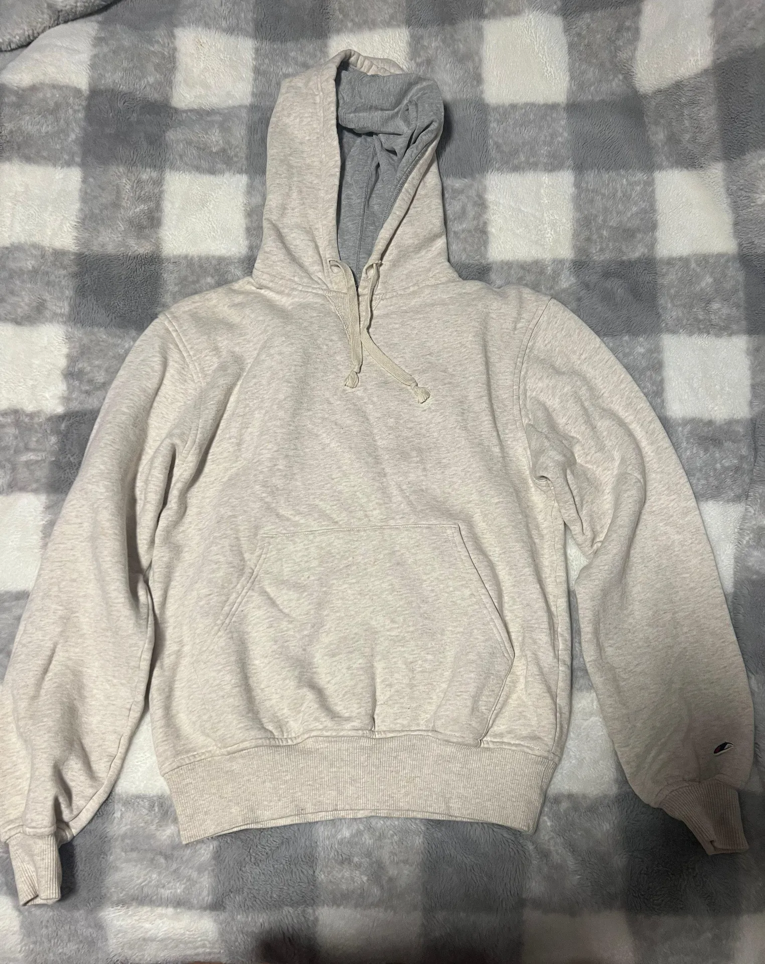 Champion hoodie Orange stains on sleeve and pocket Beige with grey lining