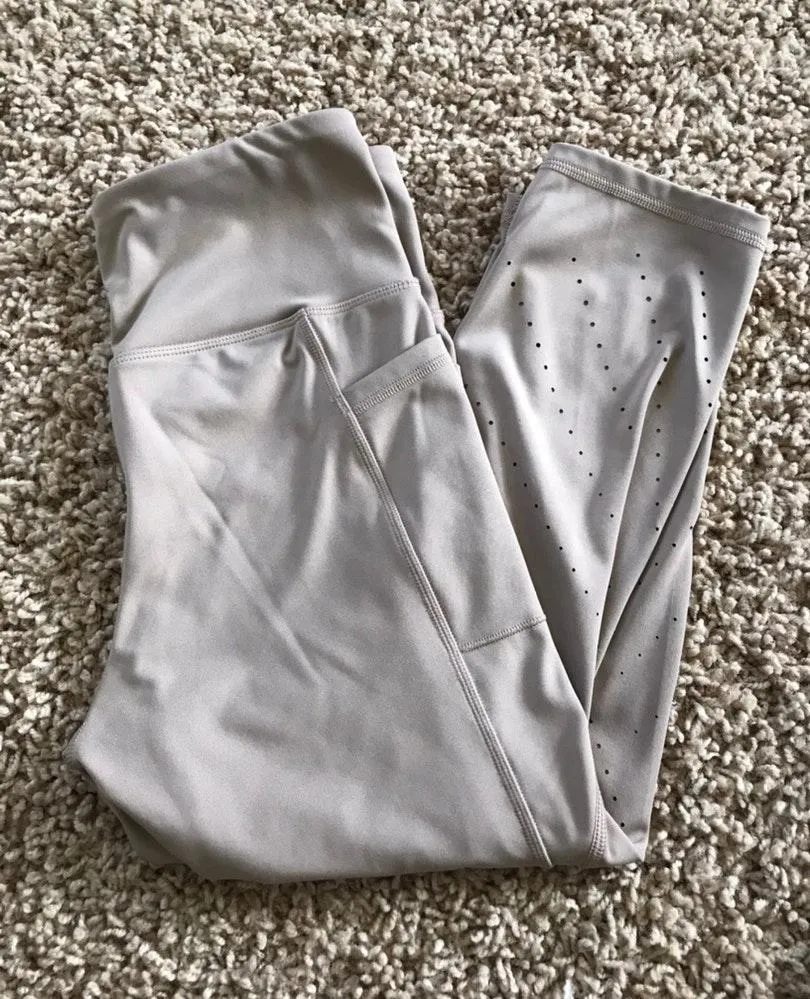 tan leggings with mesh capri cut phone pockets