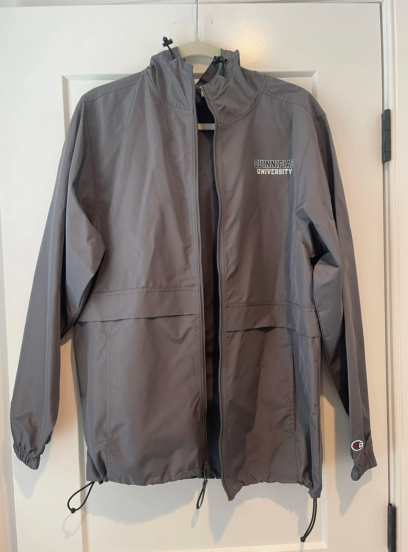 charcoal grey champion quinnipiac rain coat worn once