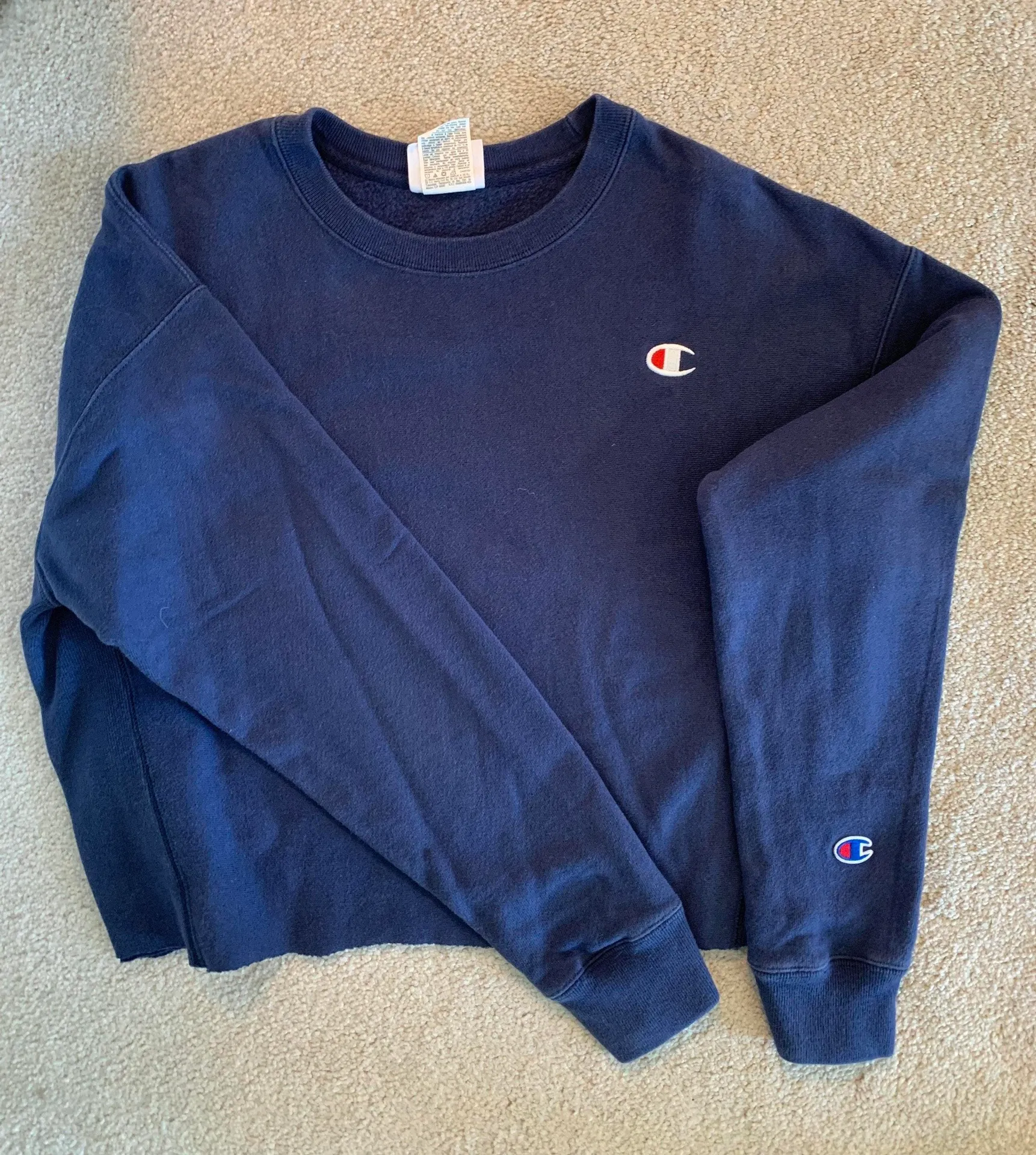 Self-cropped authentic champion reverse weave crew neck. navy blue, perfect condition. only worn a f... Show more