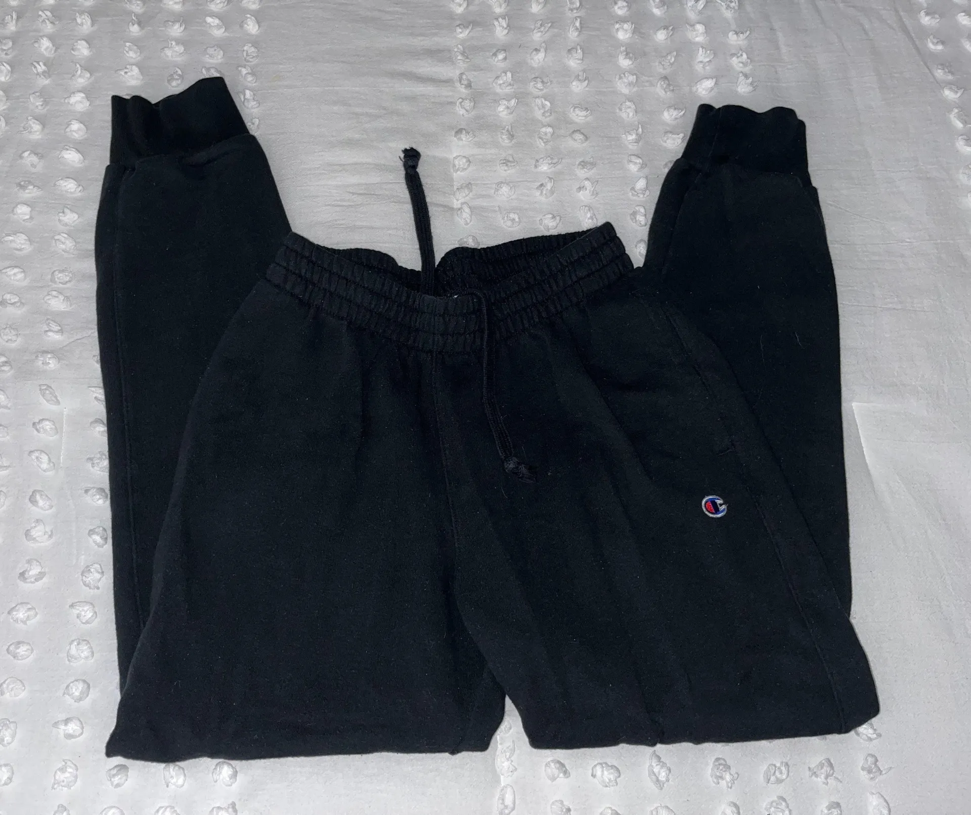black champion sweatpants! size small and worn a good amount but are still in a good condition!