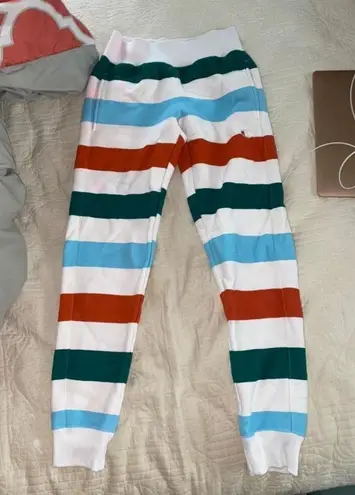 Super cute, thick striped sweats! Size XS, a little bit of pink staining on left hip but barely noti... Show more