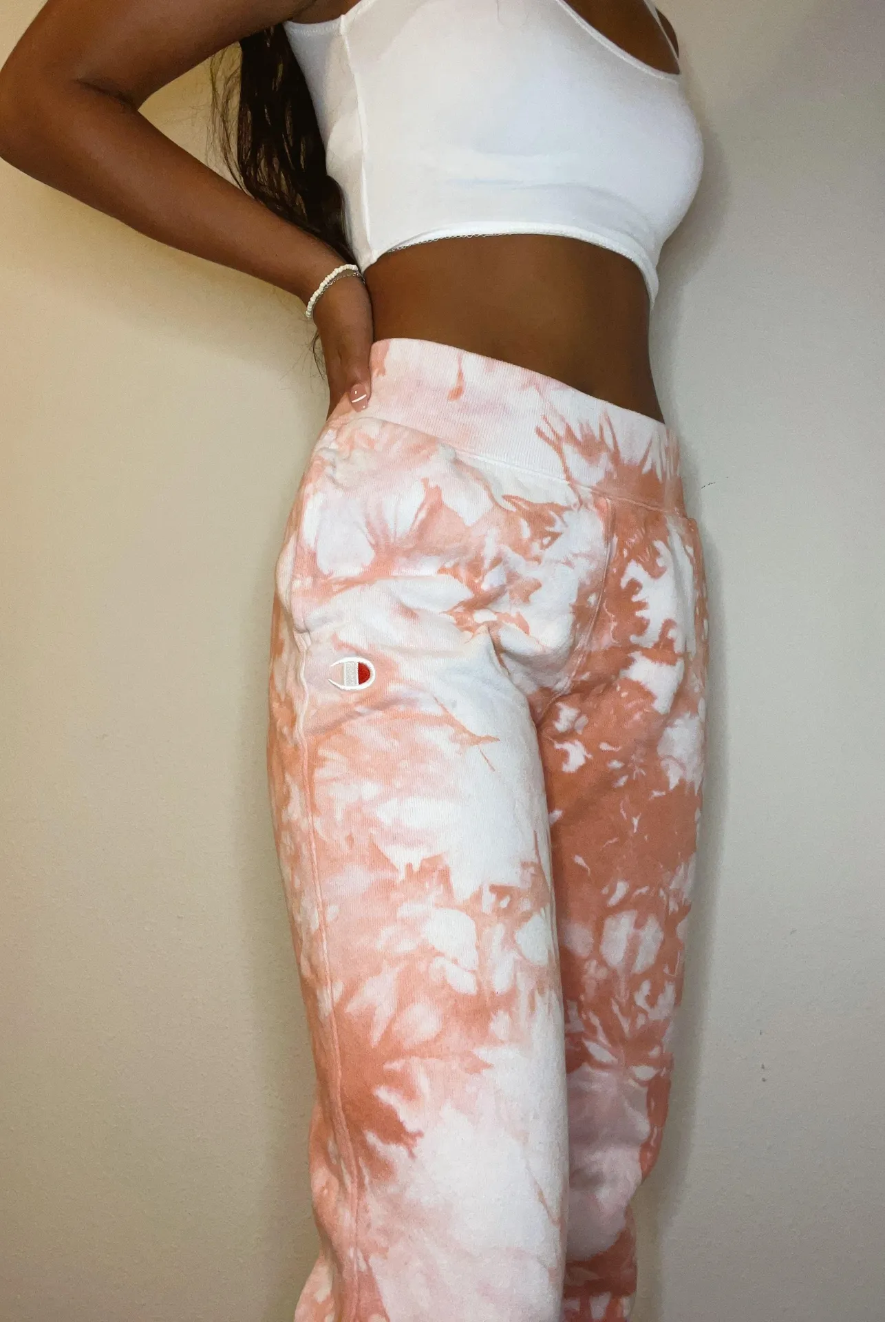 peach and white dyed champion sweatpants! These are so cute and trendy, perfect for fall. Size M, I’... Show more