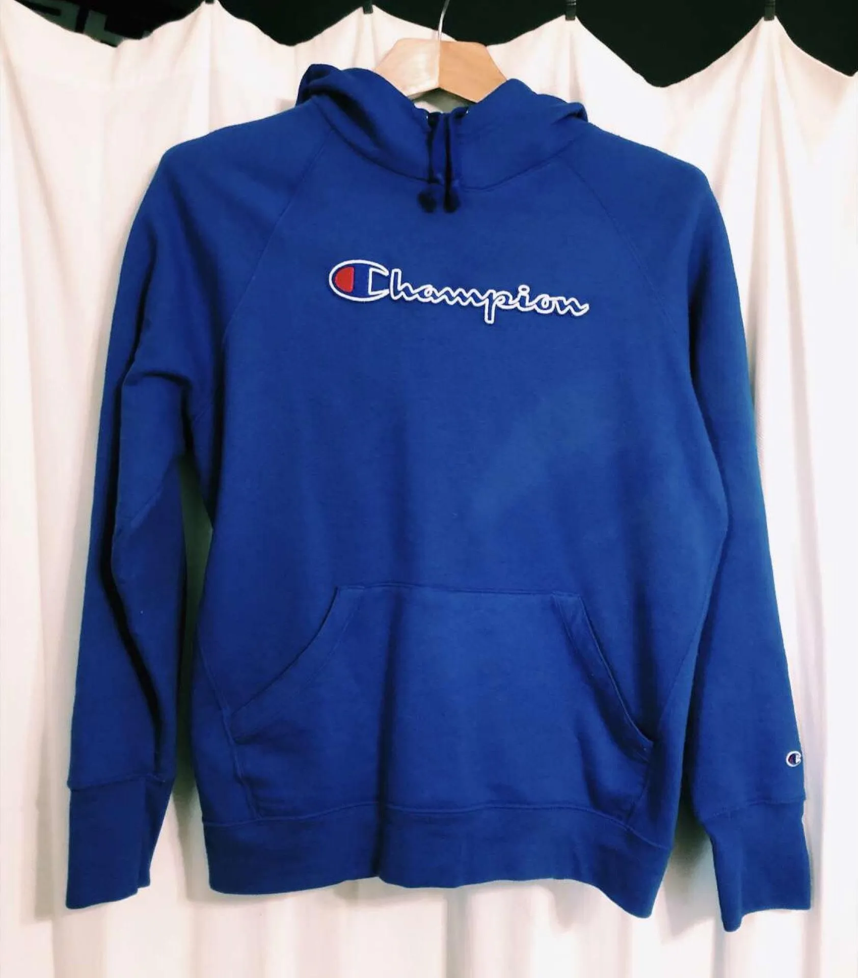 Blue champion sweat shirt has some of those fuzz balls on it but other than that it hasn’t been worn... Show more