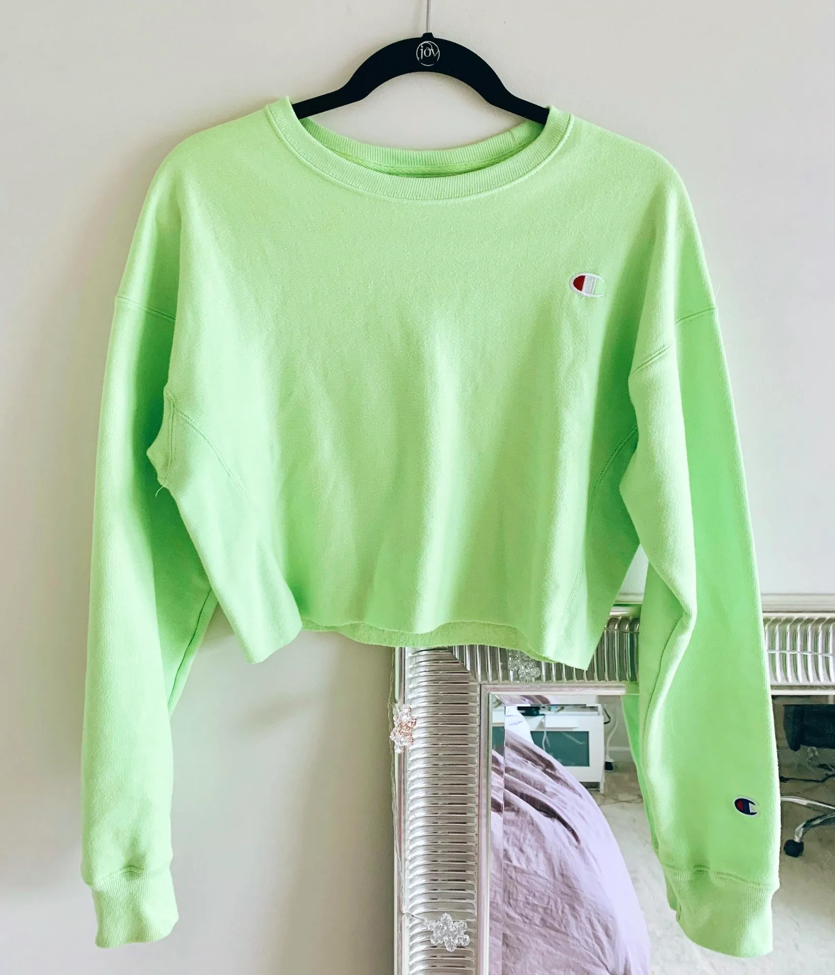 Champion neon green crewneck sweatshirt size small self cropped length: 17in