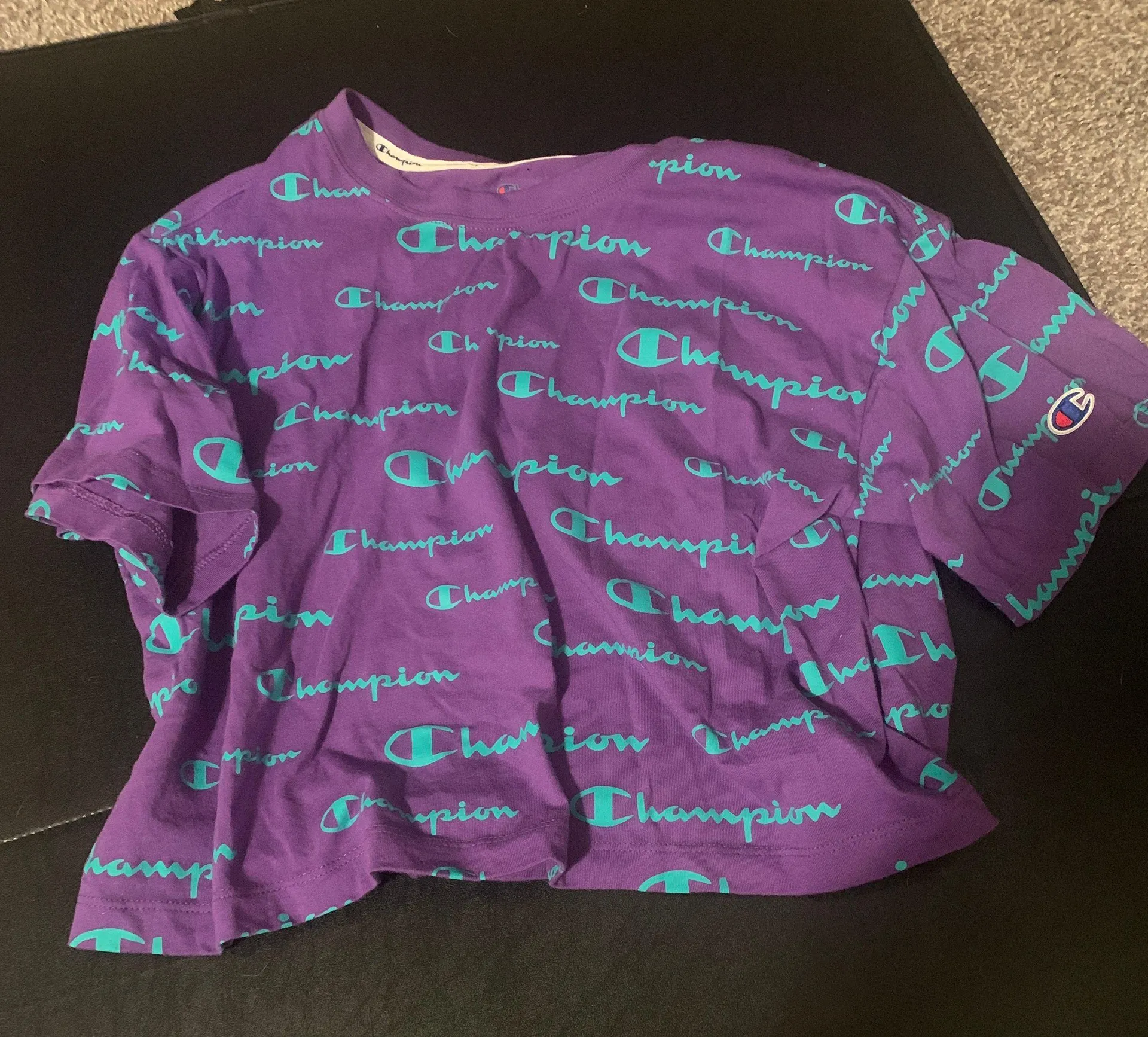 Hardly worn neon purple and neon mint green champion crop top
